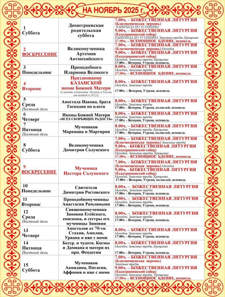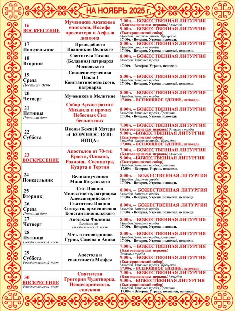 Расписание богослужений