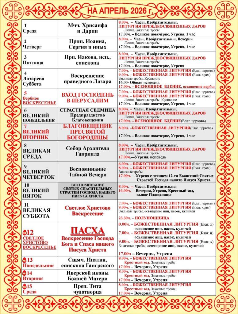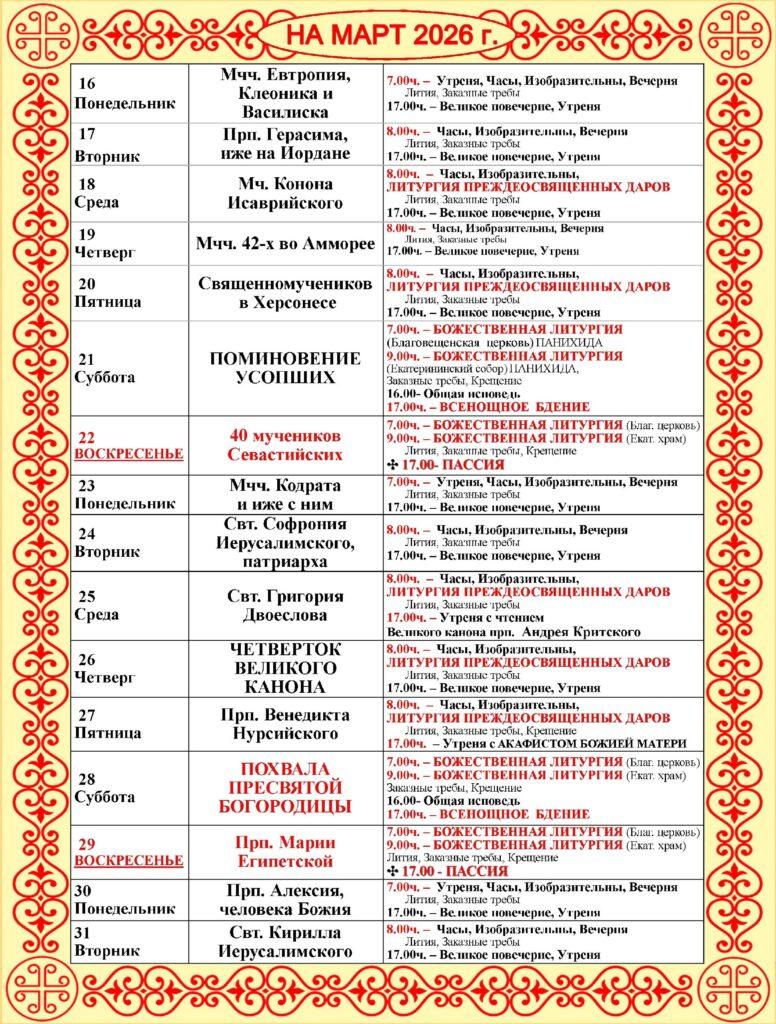 Расписание богослужений в Екатерининском кафедральном соборе города Слободского